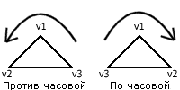 Когда мы создаем треугольник, перед всегда рисуется против часовой стрелки. Обратная сторона треугольника рисуется по часовой стрелке.