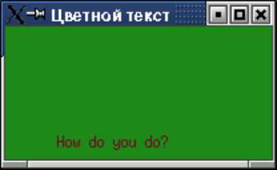 Само же рисование осуществляется с помощью тех же функций, что и ранее. Для использования нескольких цветов, можно сделать одно из двух: мы можем либо изменить передний план и/или цвет фона GC перед любой функцией рисования, либо использовать несколько различных GC. Решение, какой из способов лучше, принимать вам: распределение многих GC будет использовать больше ресурсов X сервера, но где-то это приведет к более компактному коду, и может быть легче, чем замена цветов рисования.