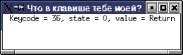 , напишите программу, которая реагирует на нажатие клавиш в окне выдачей в него кода символа, состояния модификаторов и символьной расшифровки нажатой клавиши.