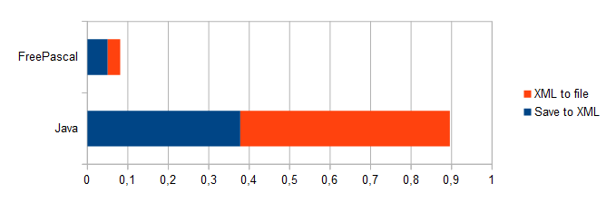 А вот сравнение производительности Java и FPC на задаче сохранения результатов в XML-файл: