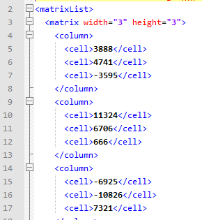 XML-файл с произведениями матриц сохранялся на SD-карту телефона в '/mnt/sdcard'. Я создаю на карте памяти два отдельных файла: с результатами работы кода на Java и с результатами работы кода на FreePascal. Вот начало содержимого результирующего файла от кода на FreePascal: