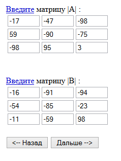 Так же можно заметить, что значения "тестовых" матриц берутся в отрезке от -100 до 100. Это тоже сделано чтобы можно было проще проверить правильность перемножения.