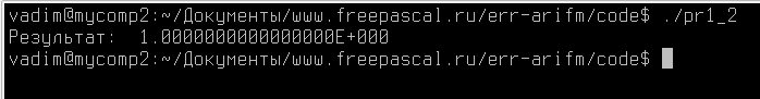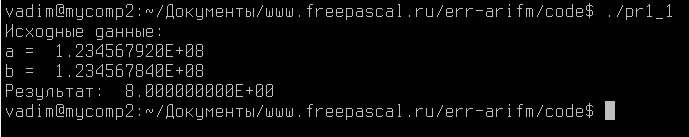 program primer1_2; Var a, b, f: Double; Begin a:=123456789; b:=123456788; f:=a-b; WriteLn('Результат: ', f); End.