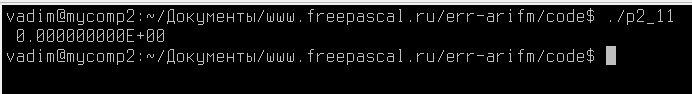 program primer2_11; Var a : Single; b : Single; c : Single; Begin a := 123456789.123457; b := 123456789.123457; c := a - b; WriteLn(c); End.