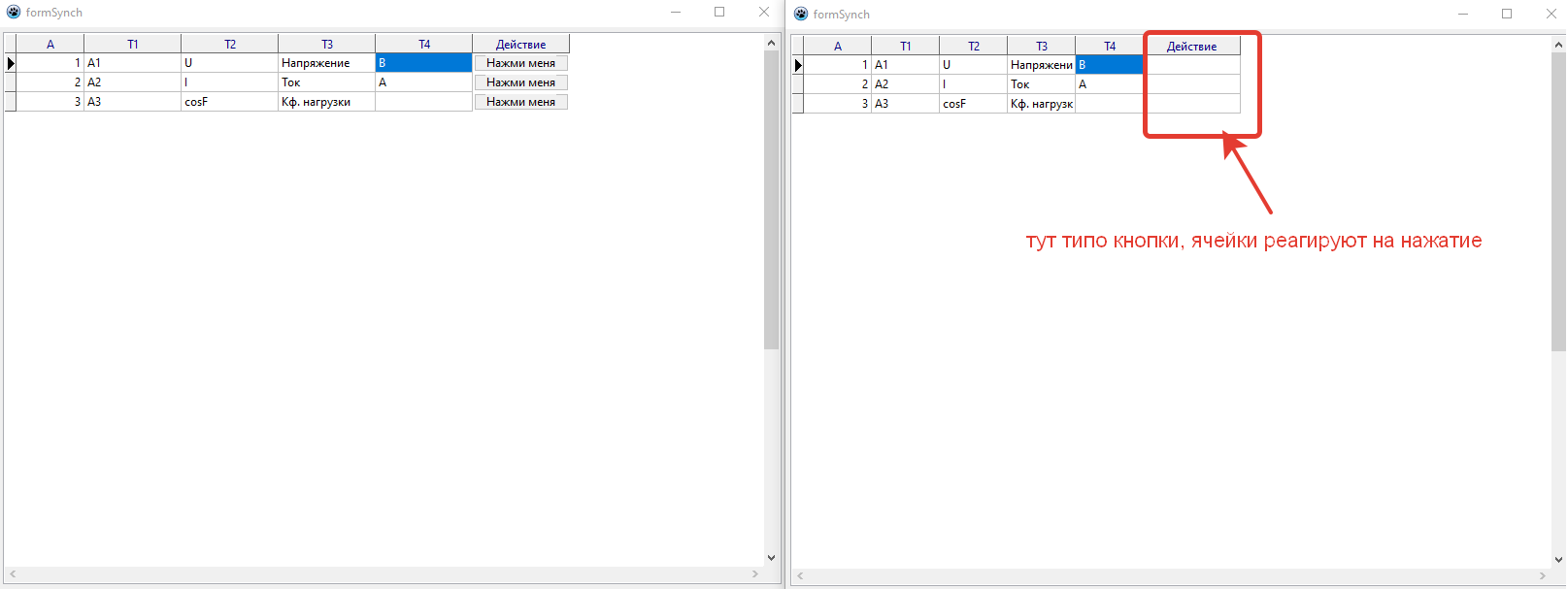 Смотри картинку, слева это когда я сам рисую кнопку внутри ячейки. справа когда назначаю колонке cbsButtonColumn.