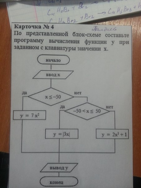 По представленной блок-схеме составьте программу вычисления функции у при заданном с клавиатуры значении х